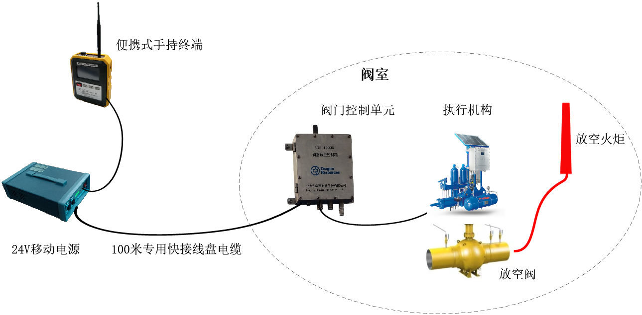 阀室放空远程操作控制系统,主要应用于长输管道阀室,提供安全的阀室放空操作。通过对阀室放空阀进行远程操作,既能够实时观察现场情况又能够保证安全距离;通过有线/无线连接以及阀室供电/移动电源等不同方案的搭配,有效协助用户安全作业。